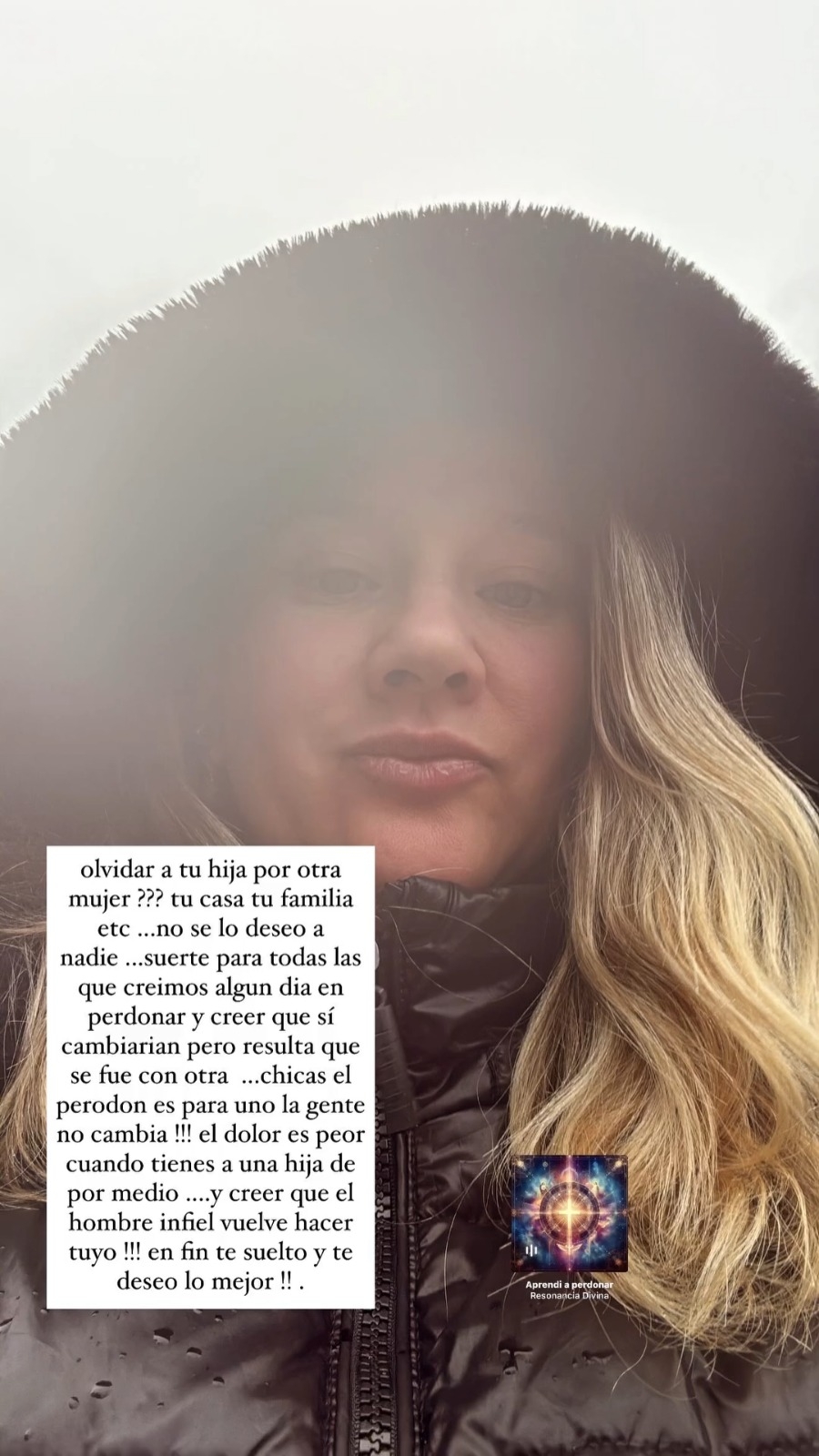 Ir a la siguiente notaSobre una imagen en la que aparece vistiendo una abrigada chaqueta, Rosemarie escribió, "¿olvidar a tu hija por otra mujer? Tu casa, tu familia, etc... No se lo deseo a nadie... suerte para todas las que creímos algún día en perdonar y creer que sí cambiarían, pero resulta que se fue con otra".