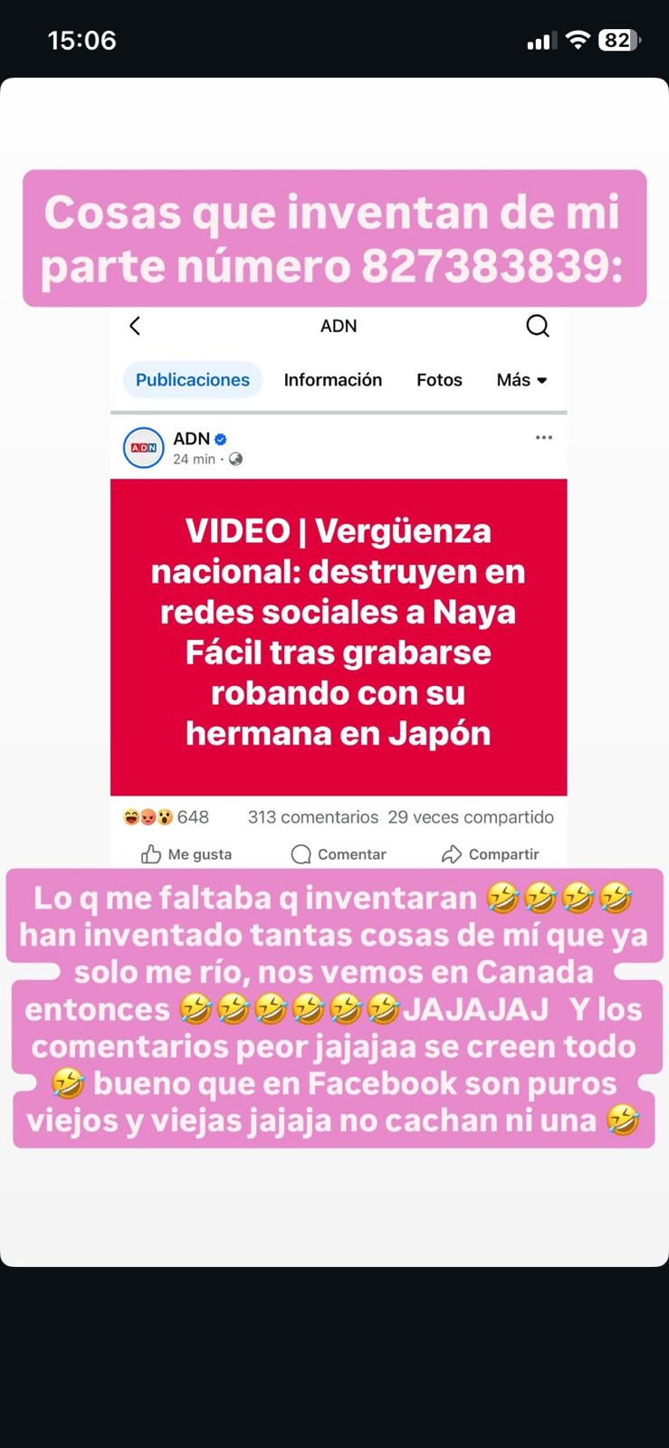 Los descargos de la influencer llegaron después de que un medio nacional publicara el titular “Vergüenza nacional: destruyen a Naya Fácil tras grabarse robando con su hermana en Japón”.
