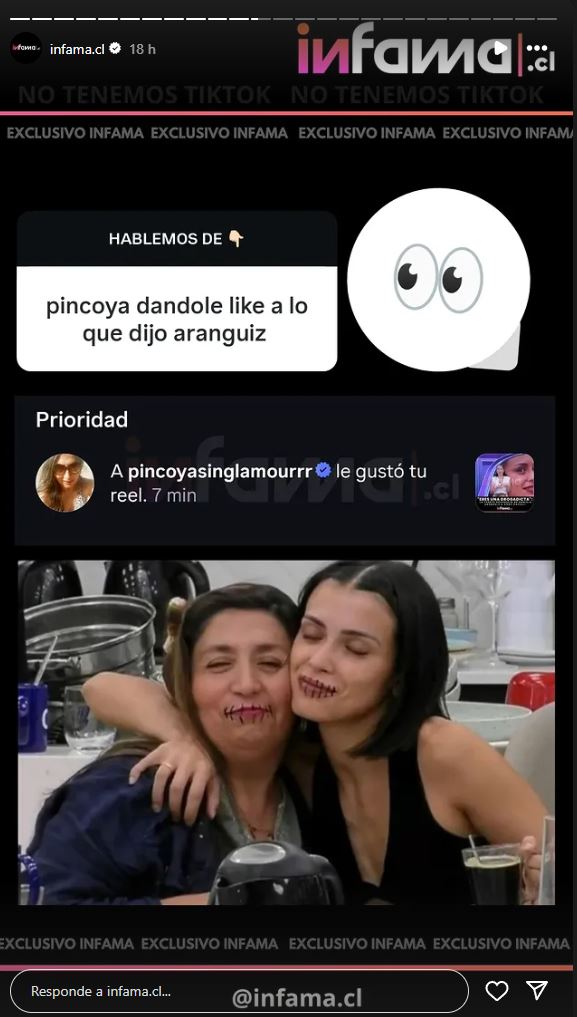 "Me empezaron a escribir que un medio digital subió una publicación en la cual fue dado un 'me gusta'. Todos saben que yo no manejo mis redes sociales. Yo trabajo con un periodista y con otra persona más", partió diciendo "Pincoya".