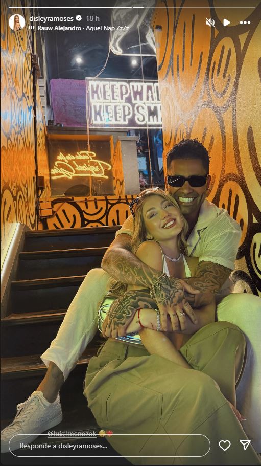 A través de su red social, Disley compartió una romántica fotografía junto al exfutbolista, donde los dos salen abrazados y con una sonrisa.