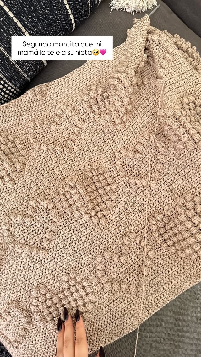 Sobre la imagen, en la que se aprecian aún algunos hilos colgando del tejido previo a cerrarlo, la joven escribió un tierno mensaje indicando que esta es la segunda "mantita que mi mamá le teje a su nieta", junto a un emoji de una cara emocionada y un corazón rosa.