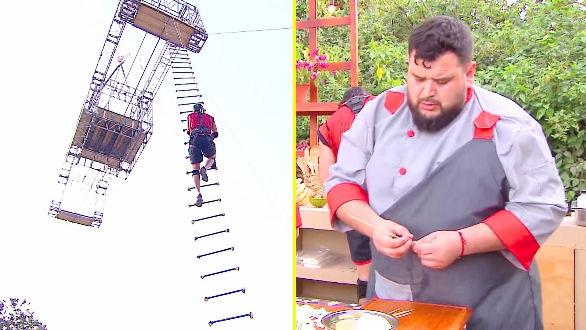 Mientras algunos se quedaban cocinando, un grupo de participantes, escogidos por el mismo equipo, tuvo que trepar una escalera de 25 metros para llegar a una plataforma que estaba en las alturas.