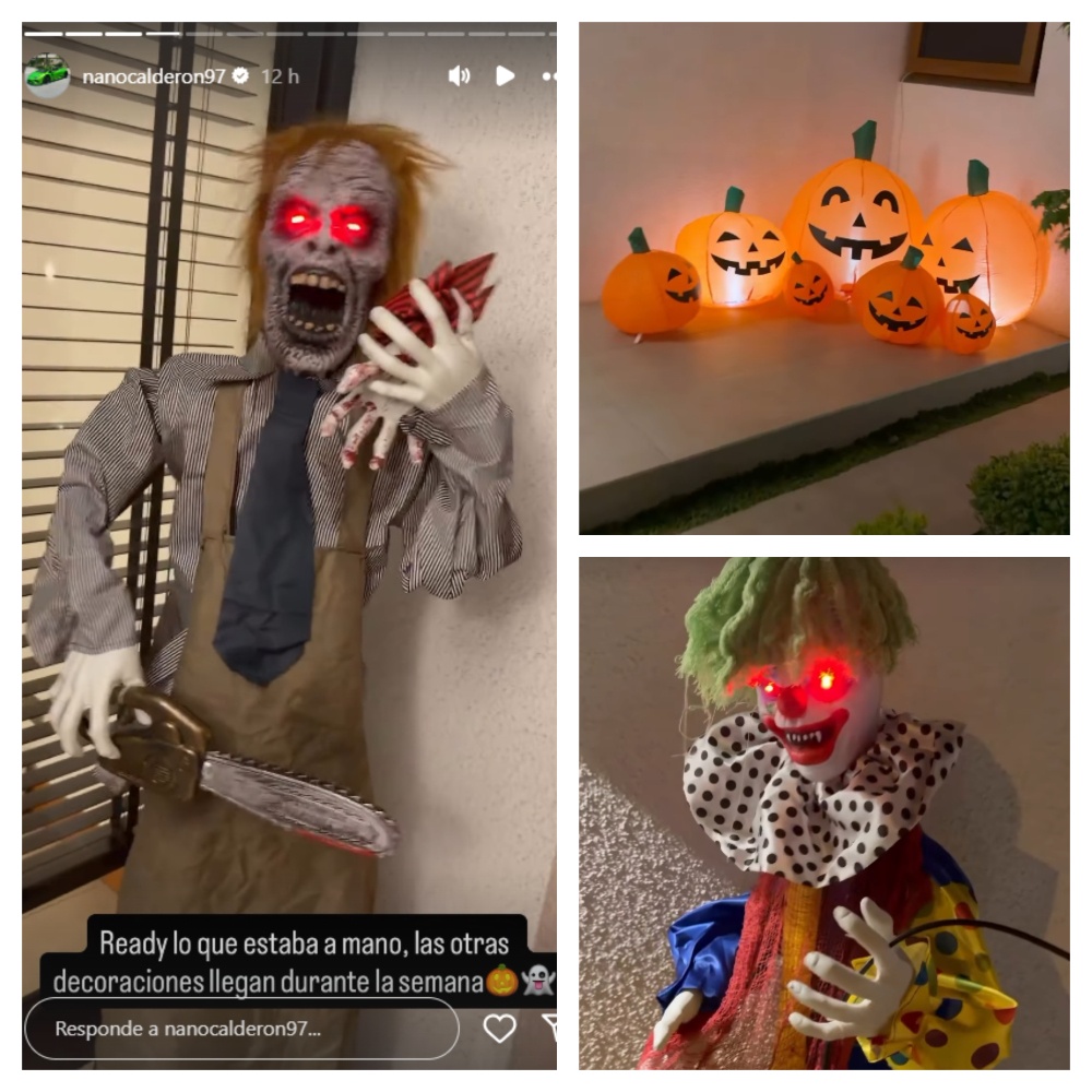 "Listo lo que estaba a mano, las otras decoraciones llegan durante la semana", escribió el hijo menor de Raquel Argandoña. En su publicación, se pueden ver un muñeco aterrador con una sierra en la mano y luces rojas en los ojos, otro payaso con características similares y las clásicas calabazas.