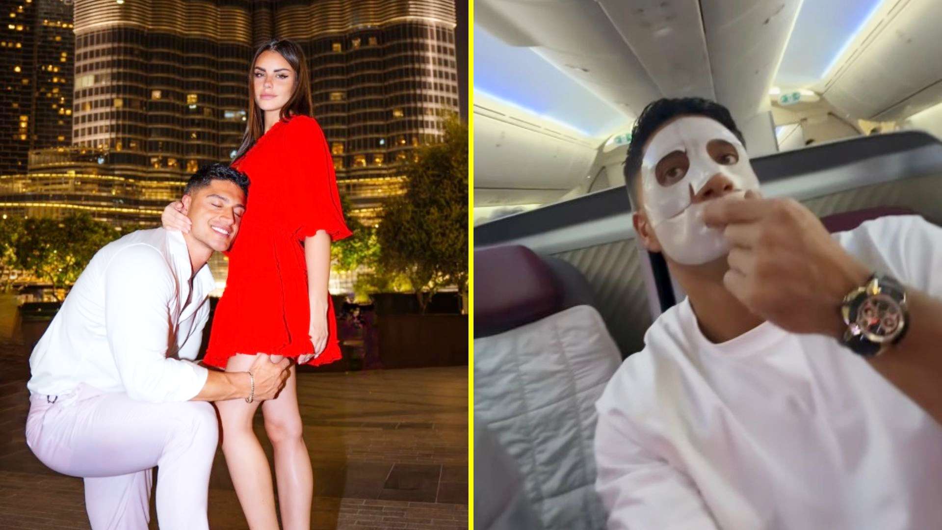 Reyes, que hoy en día está enfocado en salud deportiva y el trabajo con marcas, se mostró en una particular dinámica con la modelo, en la que ella le colocó mascarillas faciales en pleno vuelo.