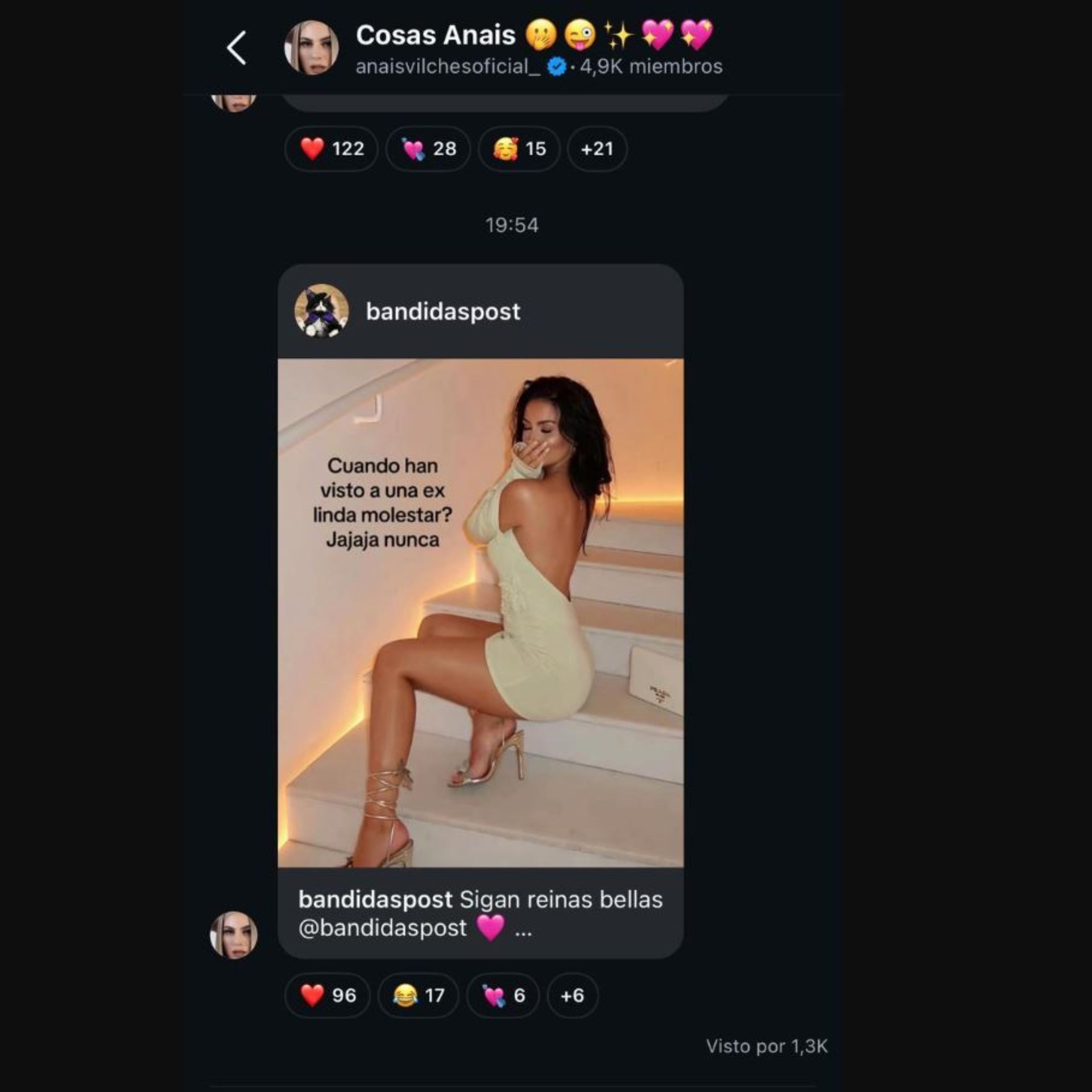 Vilches utilizó su canal de difusión de Instagram para referirse a la situación, aunque no lo hizo de forma éxplicita, sino a través de una ácida indirecta. La influencer compartió una publicación de la cuenta Bandidas Post, en la que se ve a una mujer glamorosa.