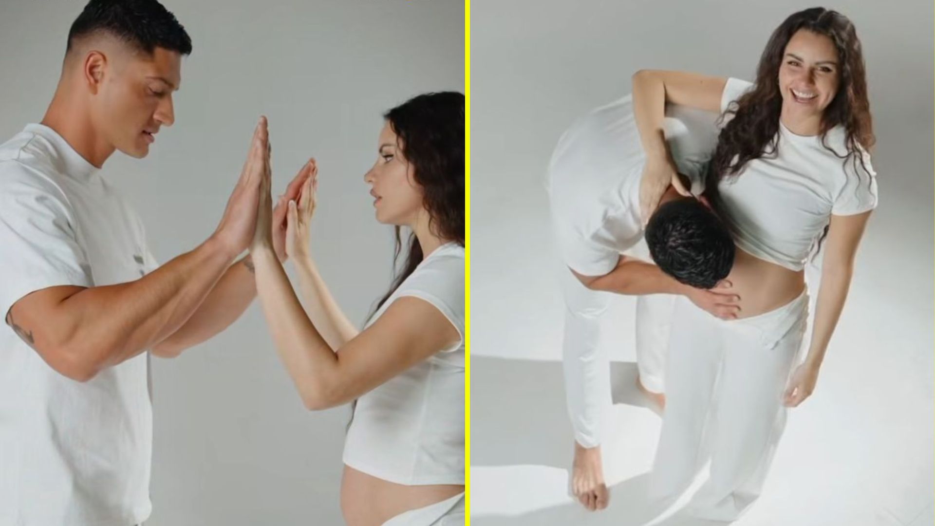 En ese instante, el video comienza a teñirse de tonalidades rosadas, dando a entender que esperan una niña, y sellan el momento con un beso.