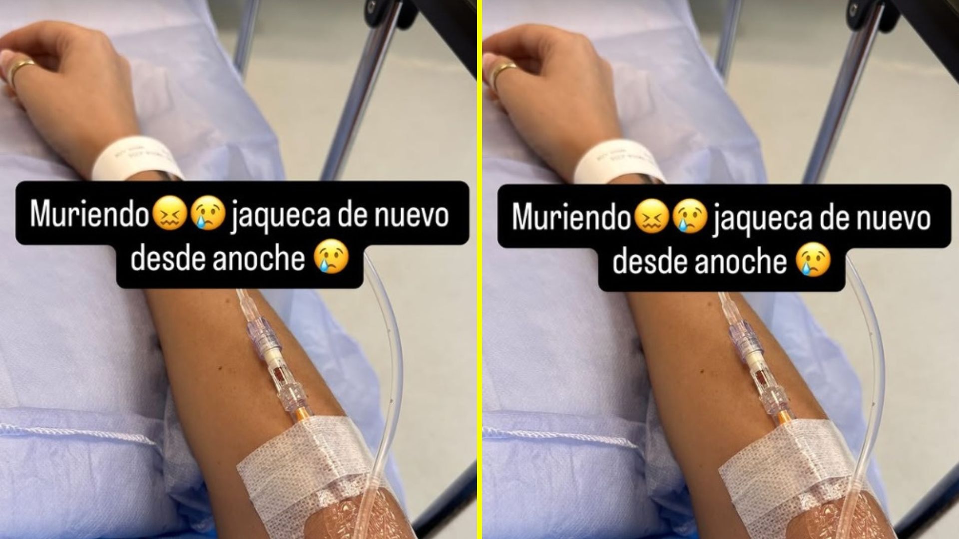En la primera imagen, la influencer mostró uno de sus brazos mientras estaba recostada en una camilla, justo cuando la atendían por un fuerte dolor de cabeza: "Muriendo. Jaqueca, de nuevo, desde anoche", dijo.