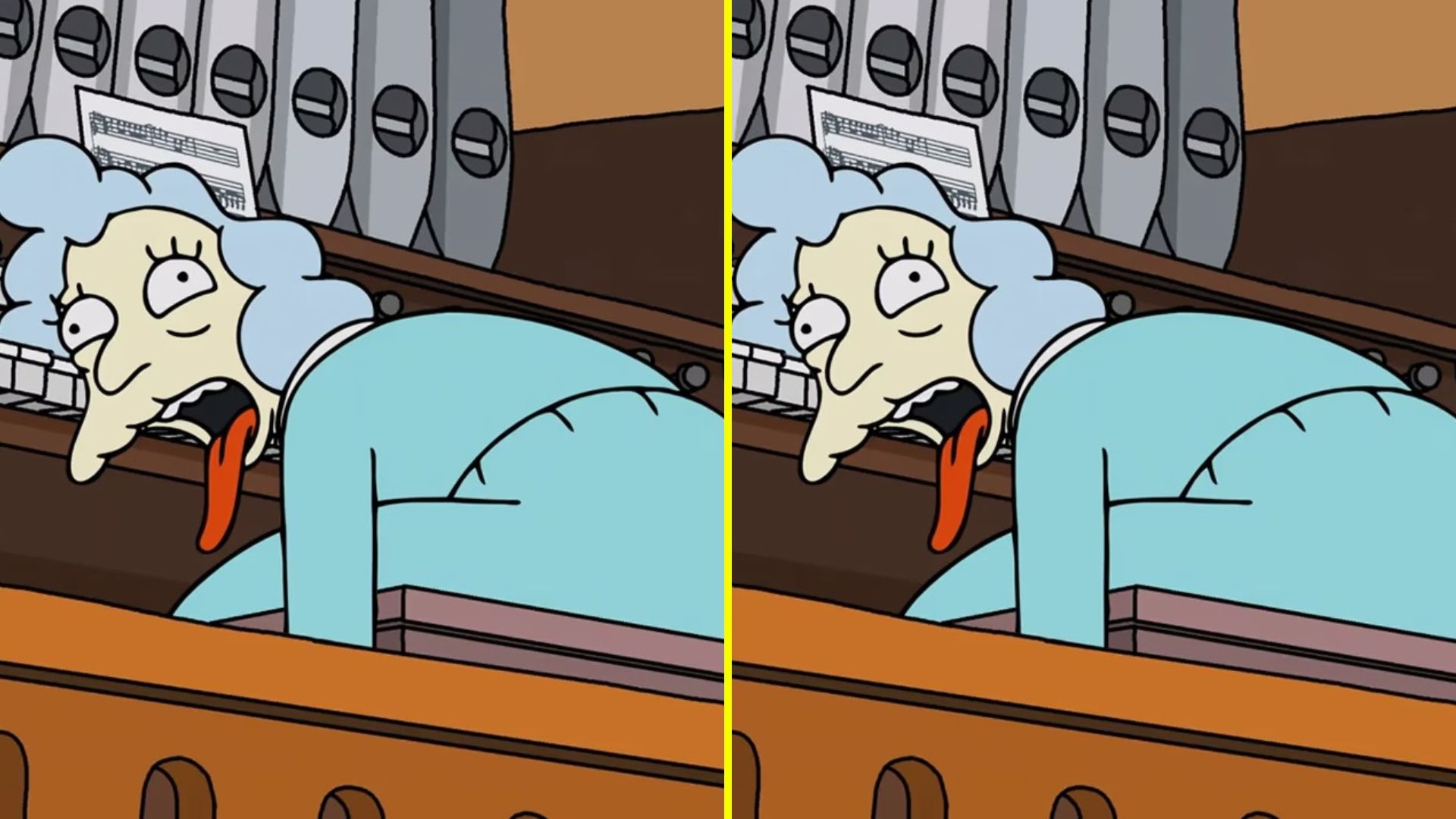 Se trata de Alice Glick, organista de la Primera Iglesia de Springfield, quien en el reciente capítulo se desplomó sobre su órgano de manera repentina.