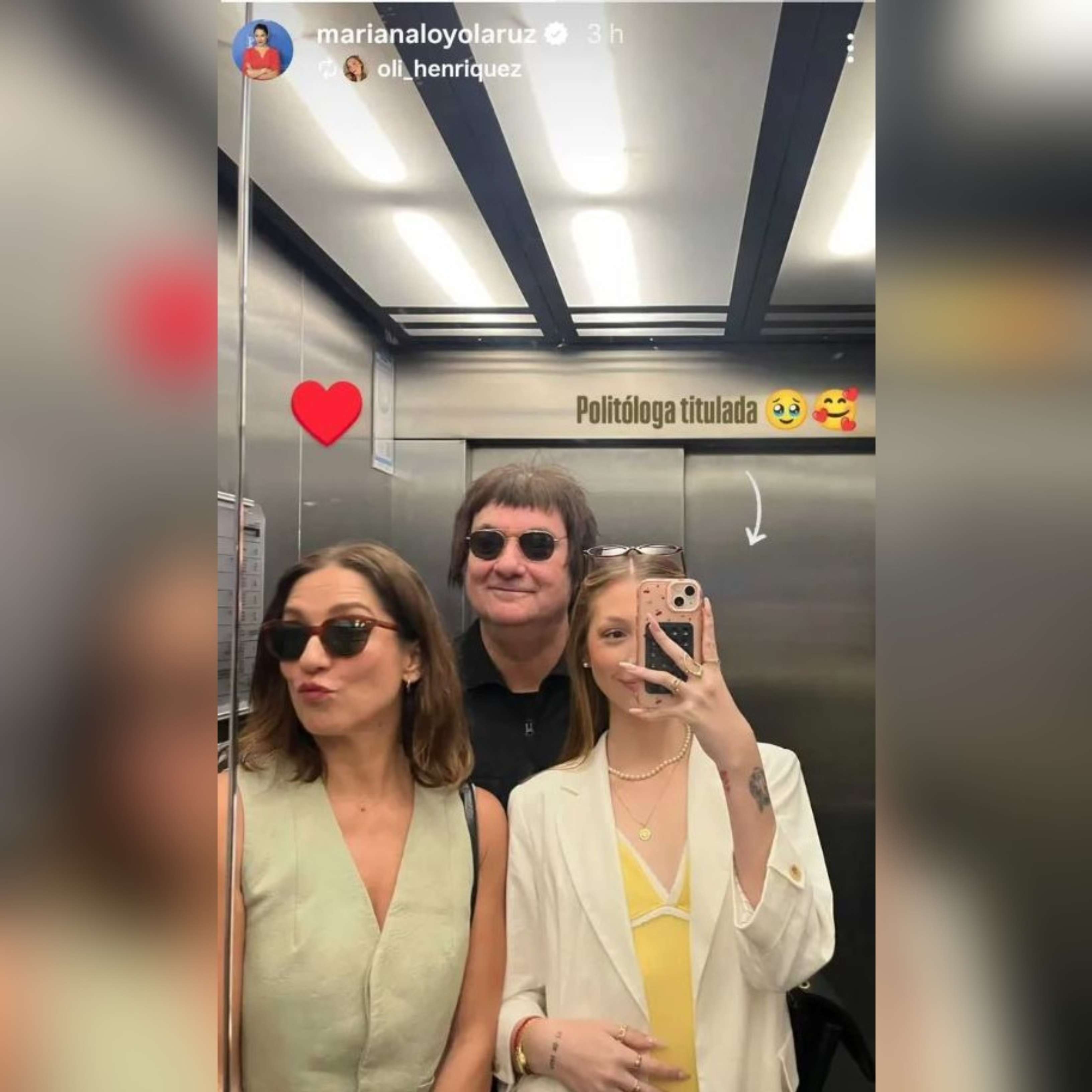 A través de sus historias de Instagram, Mariana compartió una fotografía de la alegre jornada, posando junto al vocalista de Los Tres y su hija, todos elegantemente vestidos para la ocasión. "Politóloga titulada", escribió con evidente orgullo.