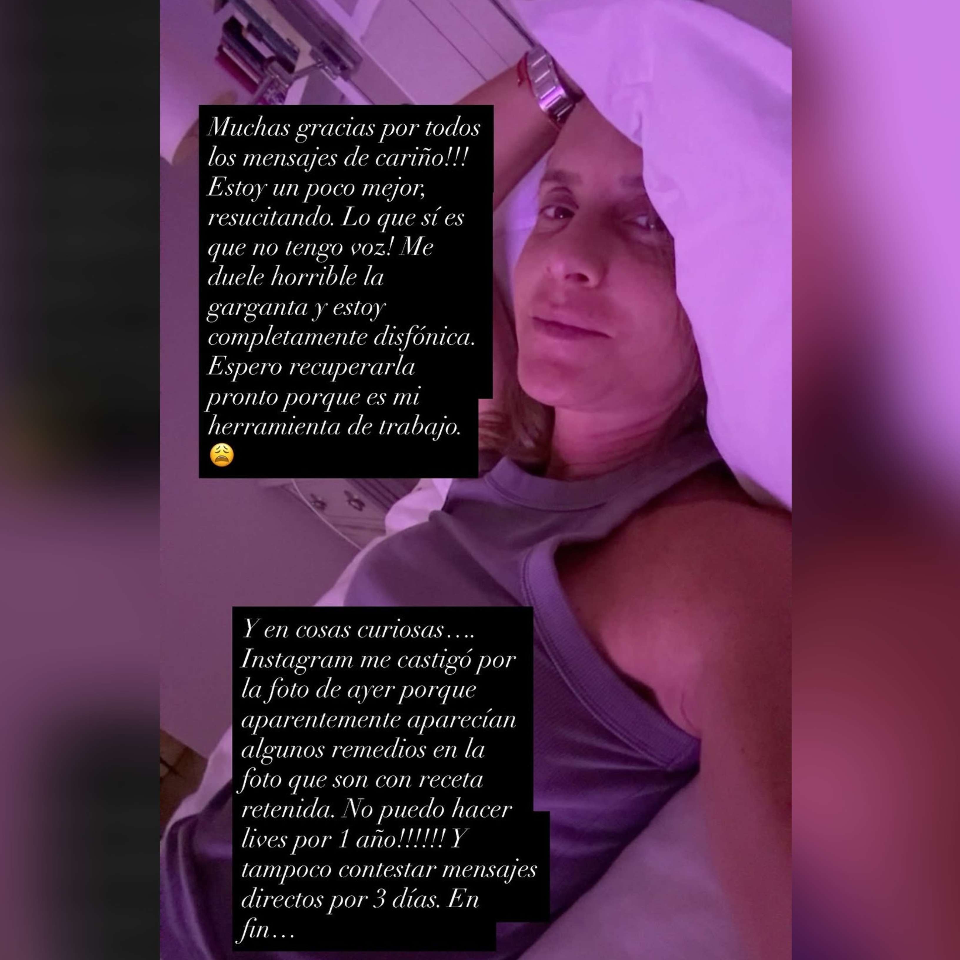 Además, aprovechó de actualizar su situación médica. "Estoy un poco mejor, resucitando. Lo que sí es que no tengo voz. Me duele horrible la garganta y estoy completamente disfónica. Espero recuperarla porque es mi herramienta de trabajo", manifestó.