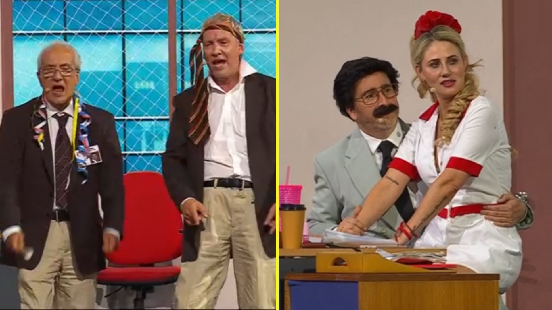 Uno de los momentos más aplaudidos fue cuando hicieron ingreso a escena los actores Fernando Alarcón y Marilú Cuevas en su rol original, haciendo de las suyas en la alborotada oficina en la que trabajan sus descendientes.