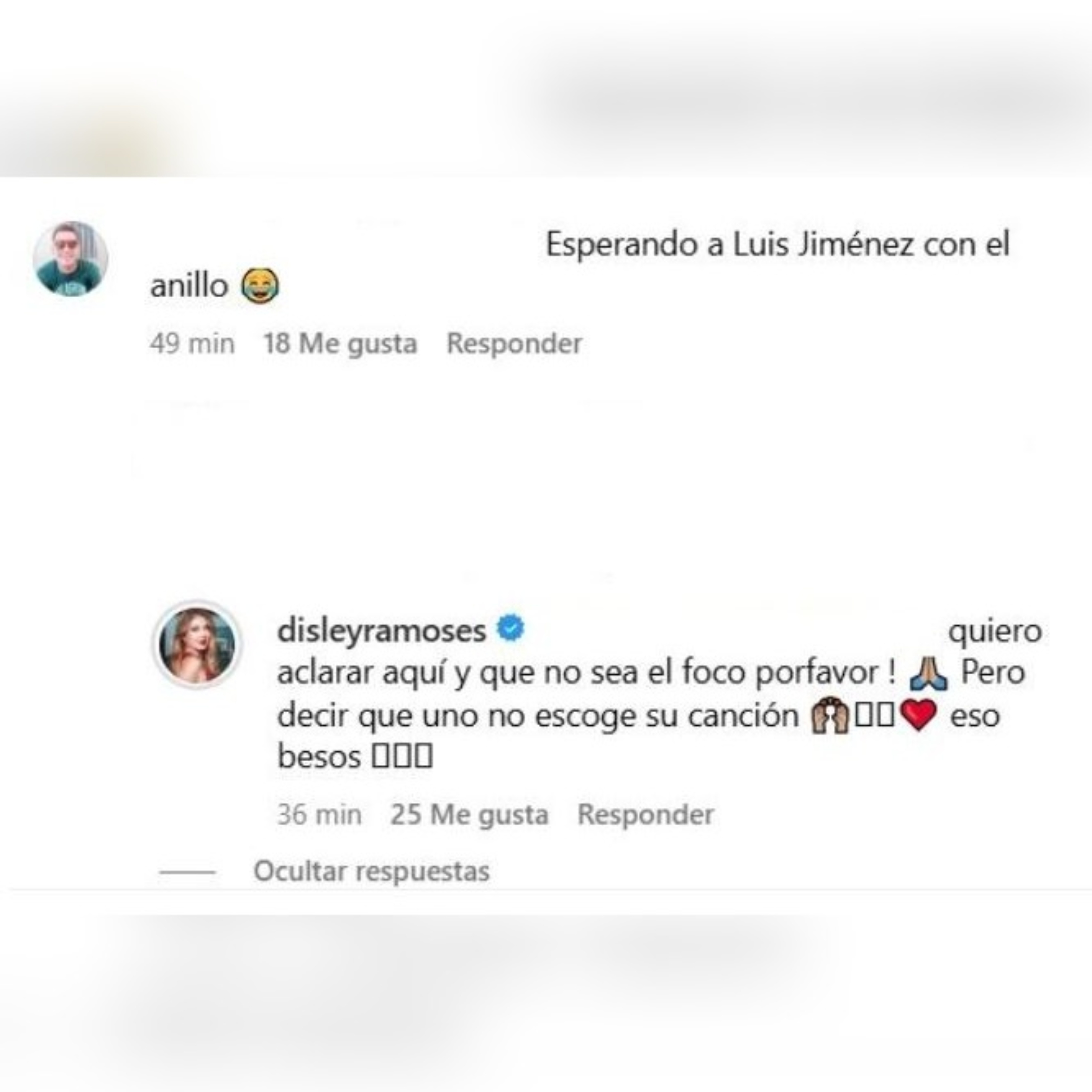 Lejos de dejar pasar el comentario, Disley decidió responder, aclarando que ella no tuvo injerencia en la elección del tema y que ese no era el foco de su participación: "Quiero aclarar aquí y que no sea el foco, por favor, pero decir que uno no escoge su canción".