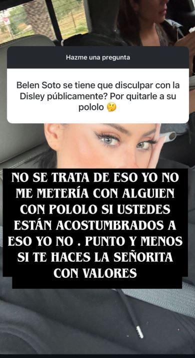 Todo se dio a raíz de una pregunta que le hicieron sobre Soto. En esta, le consultaron si es que estimaba que ella "se tiene que disculpar con Disley (Ramos) públicamente por quitarle su pololo".