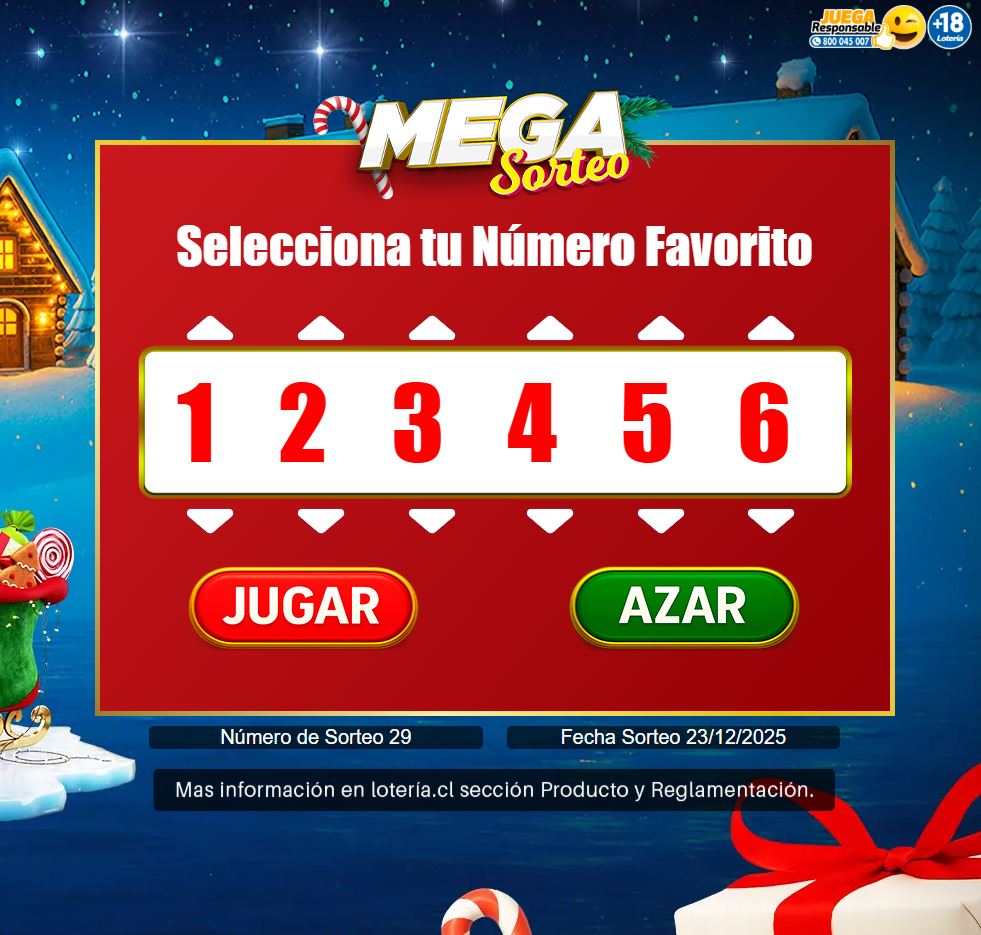 Para participar en el Mega Sorteo Navidad, el apostador debe elegir una combinación única de 6 números, cada uno entre 0 y 9. Ejemplo: 8-7-8-5-4-3. Para hacer válida su apuesta, se debe pagar $1.000.