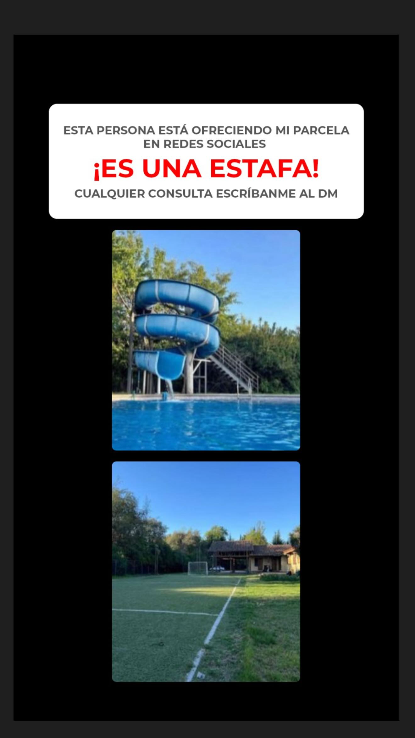 “Esta persona está ofreciendo mi parcela en redes sociales. ¡Es una estafa! Cualquier consulta escríbanme al DM”, escribió Medel en una de sus historias de Instagram, buscando advertir a posibles afectados.