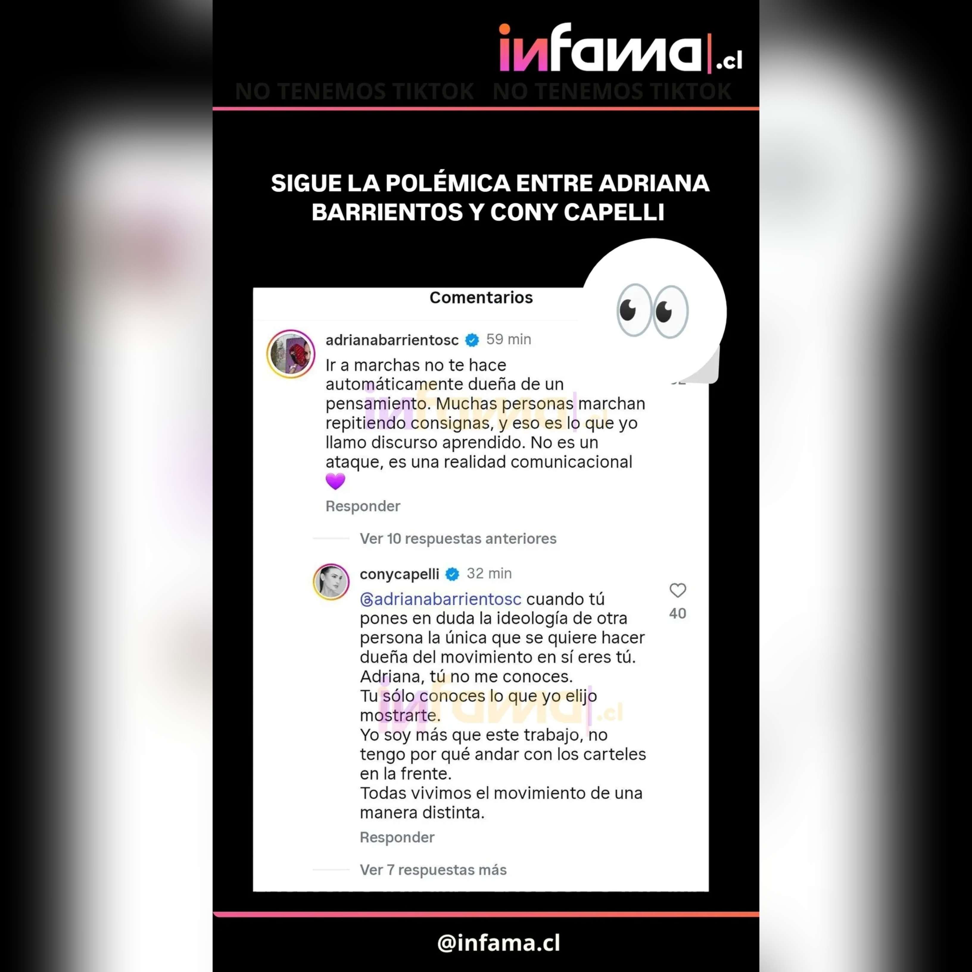 Sin embargo, Cony no dejó pasar su mensaje y volvió a reaccionar. "Cuando tú pones en duda la ideología de otra persona, la única que se quiere hacer dueña del movimiento en sí, eres tú. Adriana, tú no me conoces", manifestó.
