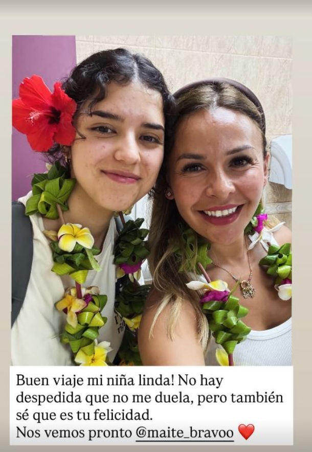 Mediante una historia en la mencionada red social, Pardo tuvo que despedir a Maite, quien se va de viaje, aunque no se especificó hacia dónde emprende el rumbo.
