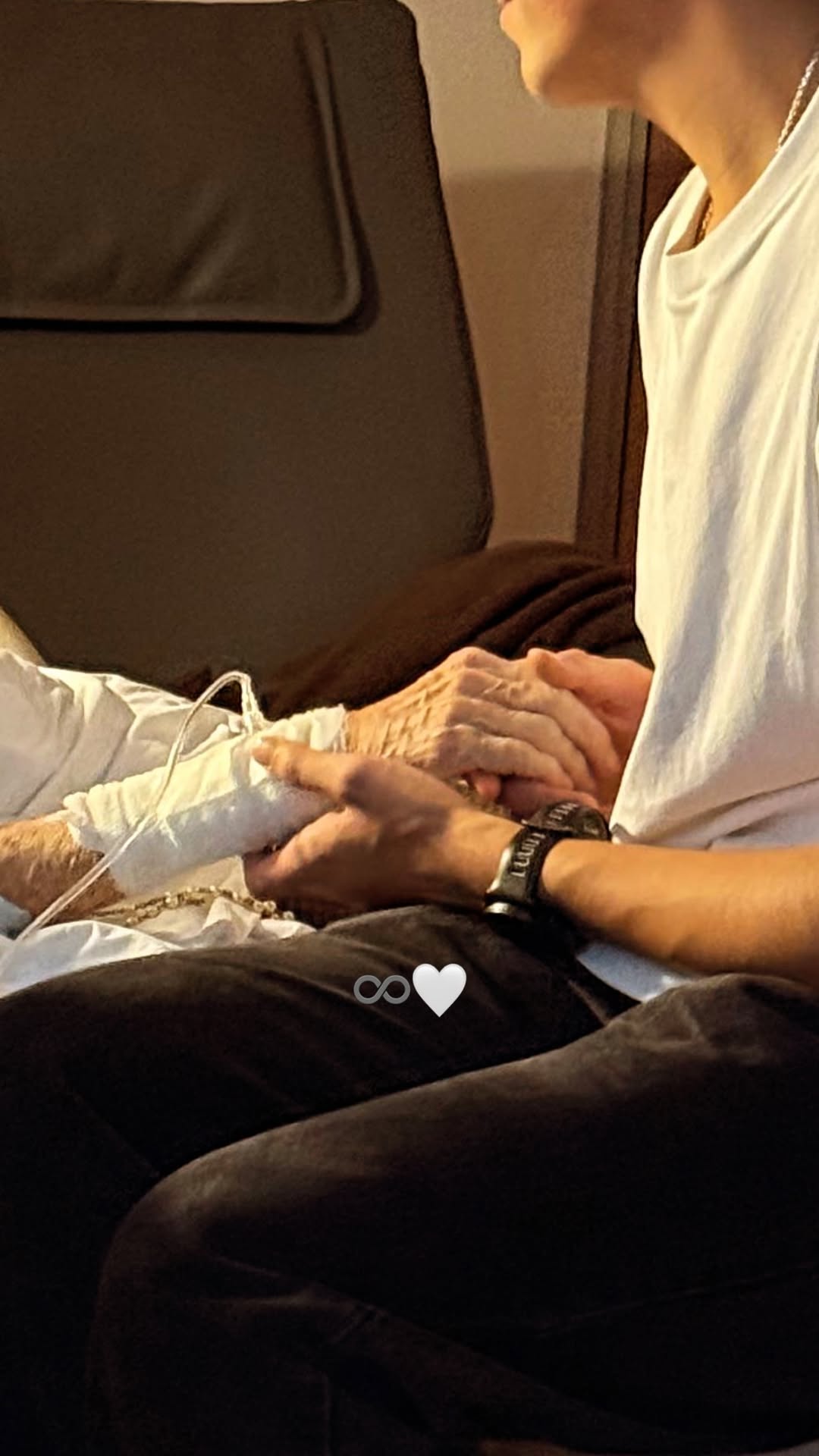 El influencer publicó dos emotivas fotografías a través de sus historias de Instagram. En ambas se le ve junto a Rose Marie, mientras ella está tendida en la camilla de la clínica.