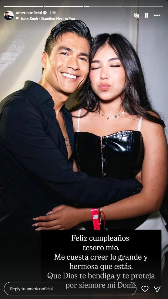 Ir a la siguiente nota"Que Dios te bendiga y te proteja por siempre, mi Domi", añadió Américo en la publicación compartida en su historia de Instagram.