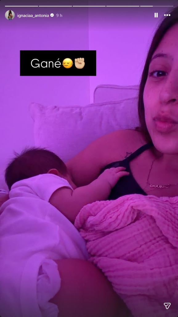 Pero la situación logró ser solucionada. En otra historia, Ignacia Antonia contó que logró que Amelia conciliara el sueño. "Gané", escribió la influencer, donde se le ve sosteniendo a la pequeña en sus brazos.