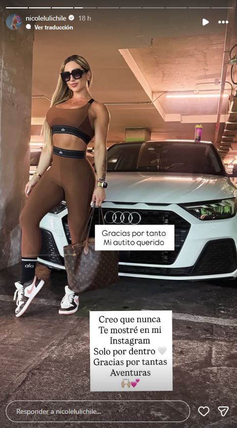 A través de sus historias de Instagram, Luli publicó una fotografía en la que se le ve posando frente a su antiguo vehículo, un Audi color blanco y con la que simbólicamente se despidió de él.