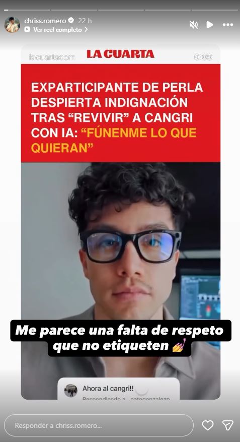 Expareja del Cangri se lanza contra Cristóbal Romero por video hecho con IA: "Te pido por favor que elimines el contenido"