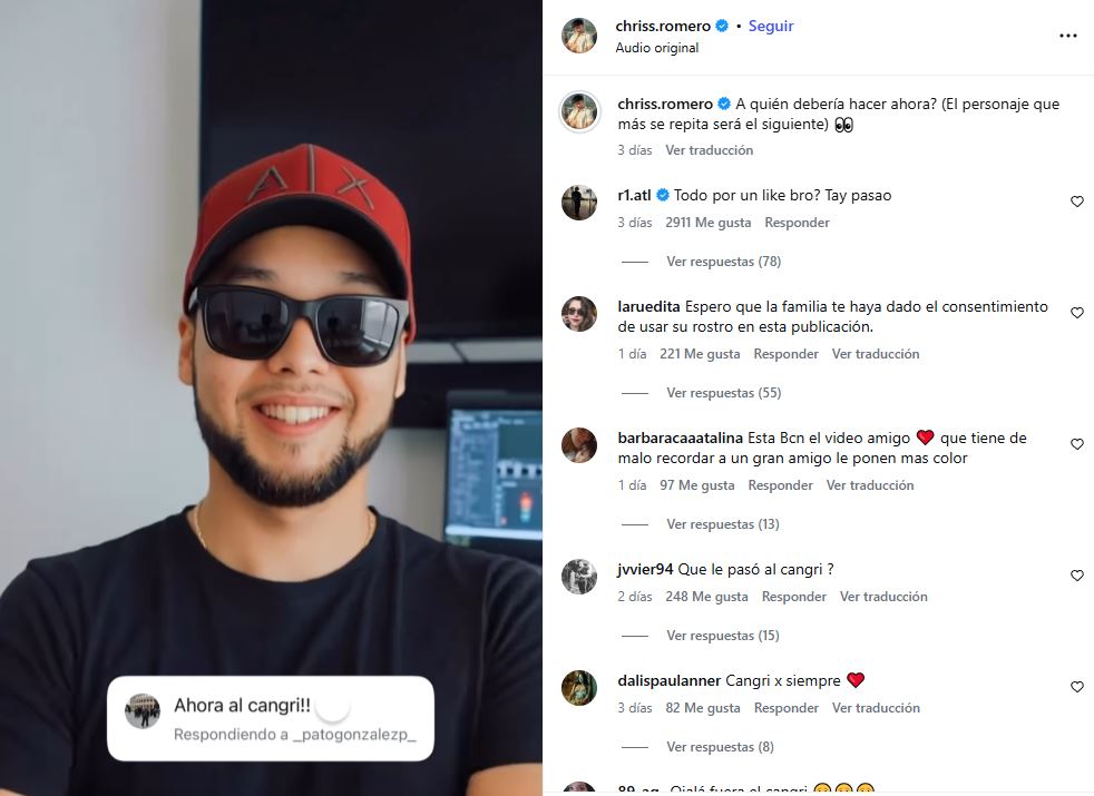El comentado video ha desencadenado un intenso debate entre usuarios de Instagram. Mientras algunos internautas critican duramente a Cristóbal Romero acusándolo de cruzar límites éticos para generar interacción y reactivar su cuenta, otros consideran que es una buena forma de recordar al artista.