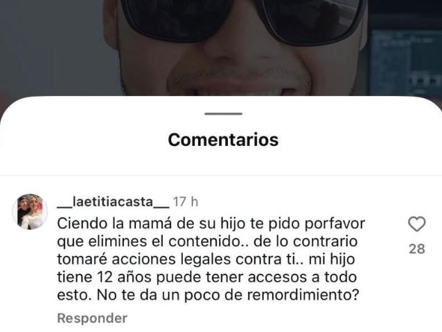 La molestia de Soto se hizo pública a través de comentarios en la publicación de Romero. En su intervención, la mujer exigió la eliminación inmediata del registro, apelando a la sensibilidad y al impacto que este tipo de contenidos tiene sobre los hijos del cantante.